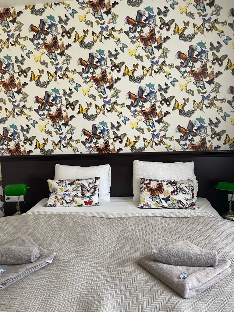 Tässä talossa yövyimme 2.-3.5. Hotelli on Fontaine Valhalla Hotel. Hotellilla on huoneita kahdessa tällaisessa vanhassa rakennuksessa.Aulatila. Nämä värit😍.EteinenMeidän huone. Basic, mutta kaikki tarpeellinen löytyy. Tunnelma ja värit täälläkin ihanat. Hinta 59,50e/yö.Tässä hotellissa on niin paljon kauniita vanhoja kalusteita❤️.