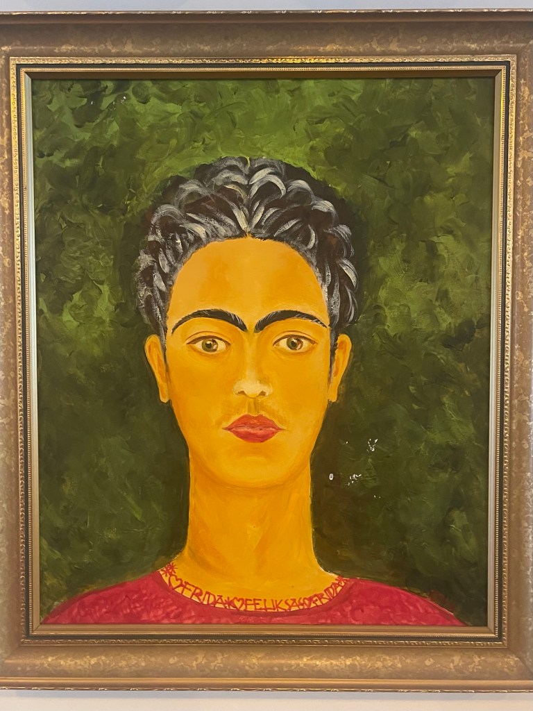 Meidän huoneessa oli oikein kaunis perhosteemainen sisustus. Sen sijaan todella iso miinus tuli huoneen kuumuudesta. Ilmastointia ei ollut lainkaan. Lisäksi ikkunoiden tiivistys olisi saanut olla parempi. Hotellin yleiset tilat olivat onneksi mukavan viileitä. Aamupala oli hyvälaatuinen ja kattava. Täytyyhän nyt Art-hotellissa olla taidetta. Jotenkin epäilen kuitenkin, että ei aivan aito Frida Kahlon maalaus ole.