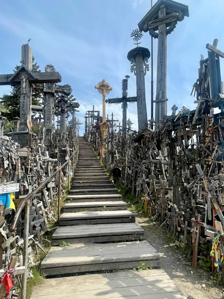 5.5. Matka jatkuu Siauliain kautta kohti ristikukkulaa ja Rundalenin palatsia. Lämmintä on edelleen parisenkymmentä astetta. Ajomatkaa tälle päivälle on sen verran reippaasti, ja katseltavaa kohteissa paljon, joten valitaan suosiolla isommat, nopeammat väylät. Illaksi täytyy ehtiä Riikaan.