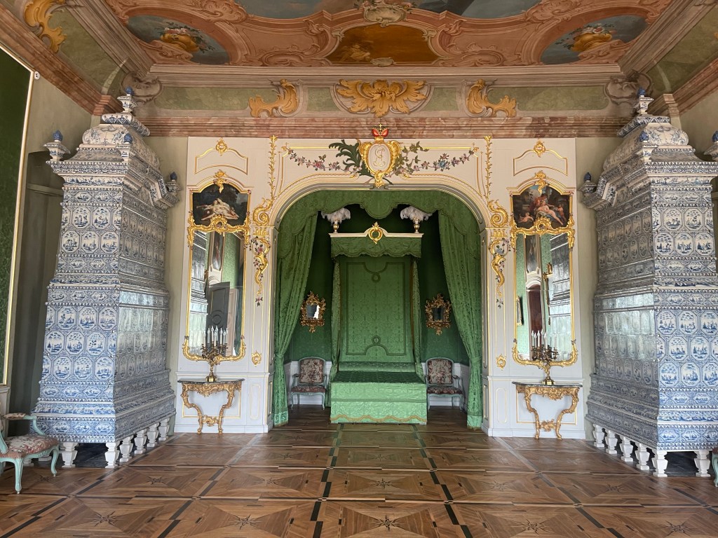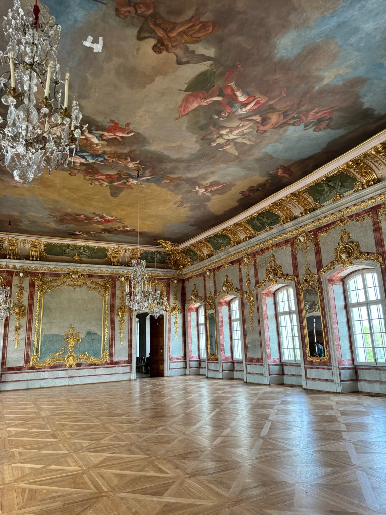 Yksi linnan parhaiten säilyneistä osista on sen valtaistuinsali, eli kultainen sali. Francesco Martini ja Carlo Zucci ovat vastanneet sen kattomaalauksista. Kohokuvat ovat Johann Michail Graffin käsialaa. Kultauksista on vastannut Johann Endress. Valtaistuin on aikojen saatossa kadonnut. Parkettilattia on alkuperäinen.