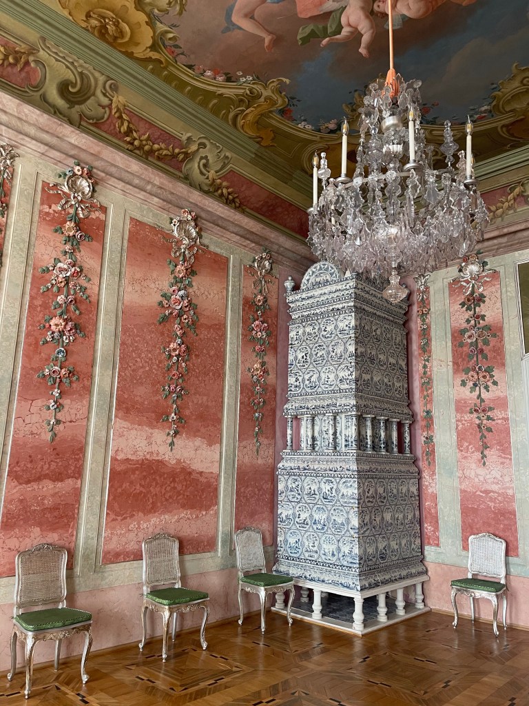 Palatsin interiööri on pääosin vuosilta 1765-1768, jolloin palatsissa työskentelivät kuvanveistäjä Johann Michael Graff (saksalainen rokokookuvanveistäjä ja kipsikko) ja taidemaalarit Francesco Martini ja Carlo Zucchi. 1766 tanskalainen Severin Jenssen aloitti hoviarkkitehtina.