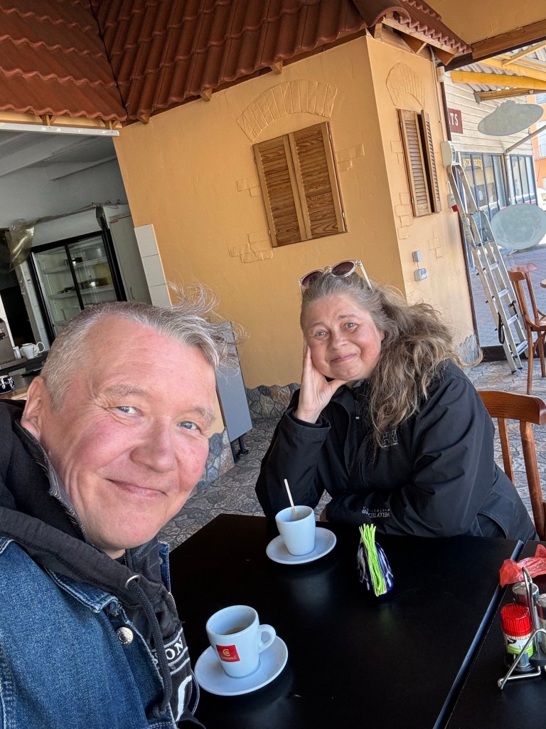 Belgian Beer Café Bon Vivant, sijaitsee meidän hotellia, Hestia Hotel Draugia vastapäätä. Kiva pubimainen tunnelma.Nam😋, valkosipulileipiä ja leivitettyä Camembertia, niin hyvää! Pasi otti kasvisburgerin ja oli muuten paras kasvispihvi, mitä oli koskaan syönyt. Vahva suositus. Alkoholitonta oluttakin löytyy.Kävimme vielä Gallerija Centrs-ostoskeskuksen Rimissä hakemassa juomatäydennystä yms ja ihailtiin samalla siellä sijaitsevan kahvion tarjontaa.Tässä se Rock Café Riga. Audeju Iela.