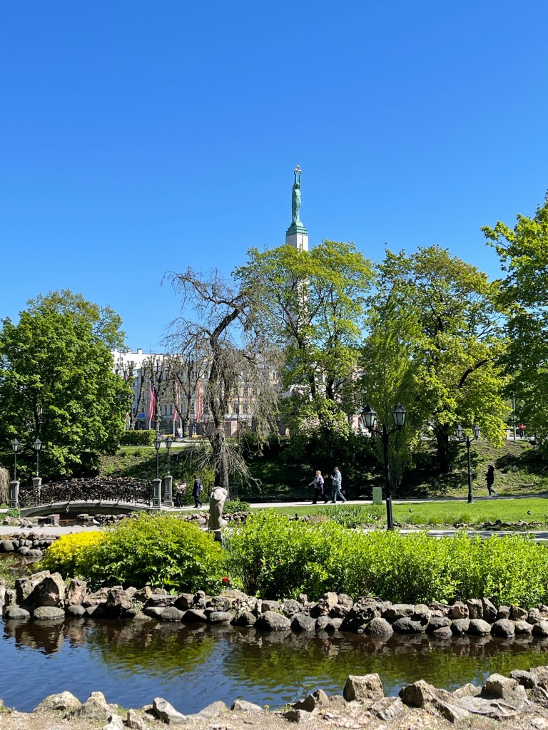 Vanhankaupungin laidalla sijaitseva vapauden muistomerkki kunnioittaa Latvian vapaussodassa (1918-1920) kaatuneita. Muistomerkki on pystytetty vuonna 1935 ja se on 42 metriä korkea. Muistomerkki on tehty graniitista, travertiinistä ja kuparista. Lisää aiheesta: WikipediaKaunis Bastejkalna-puisto muistomerkin kupeessa.Turistiryhmä oli vallannut tämän lukkosillan.Kaunista on.