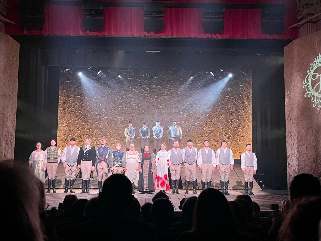 Näytelmä oli ehdottomasti hyvä, joskin hiukan tummanpuhuva sotakuvaelmien myötä. Näyttelijäsuoritukset olivat aivan upeita ja itse henkilökohtaisesti pidin erityisesti talousmamselli Friedan hahmosta. Aivan kertakaikkiaan mahtava roolisuoritus, juuri sitä mitä sarjan perusteellakin osasi kuvitella! Visuaalisesti esityksessä mieleenpainuvinta oli venäläissotilaiden ”ratsastaminen” sotatantereella. Myös monia muita hienoja visuaalisia elementtejä löytyi.