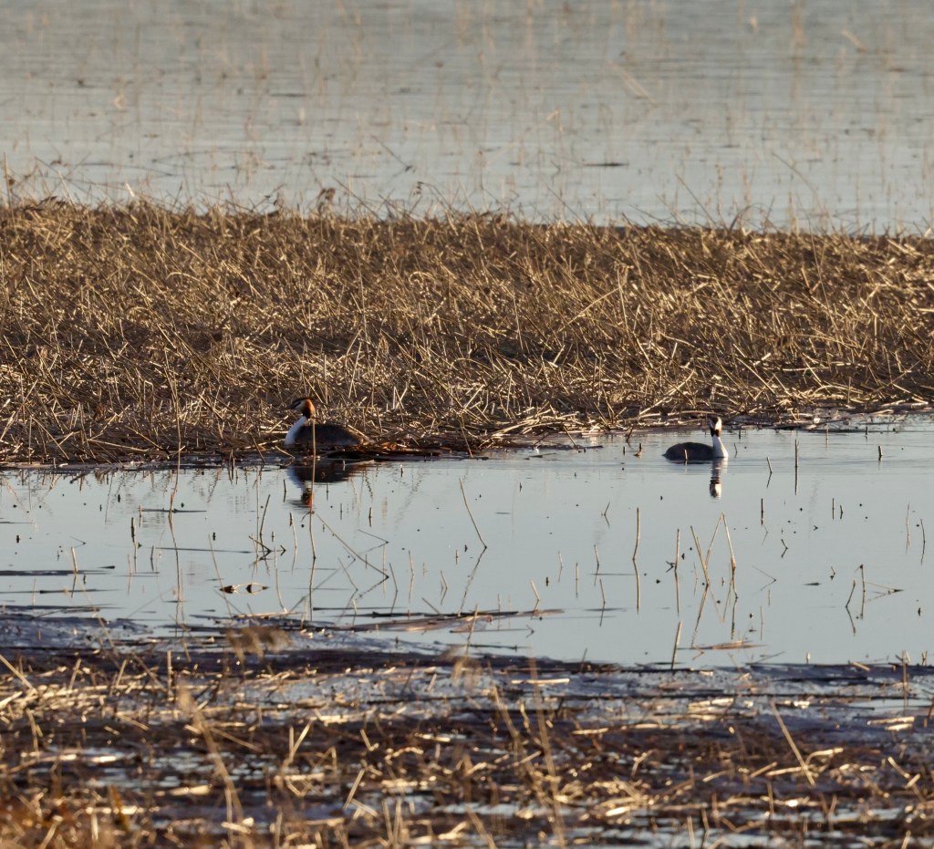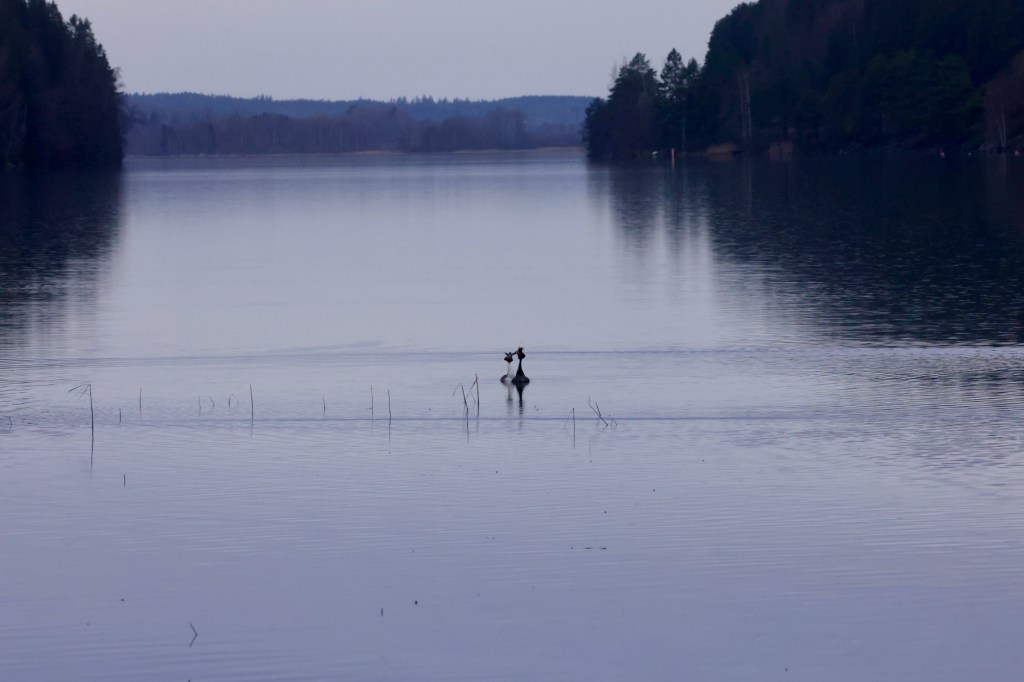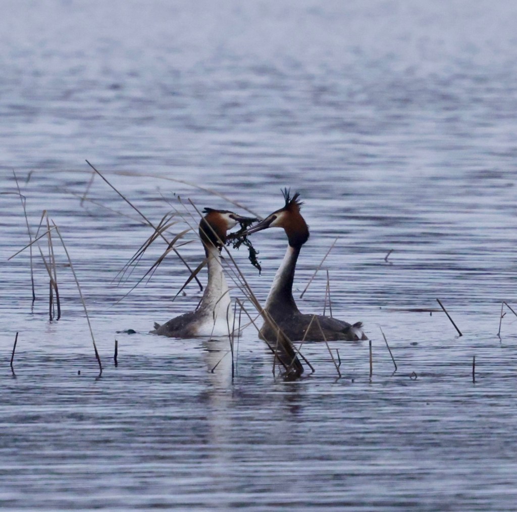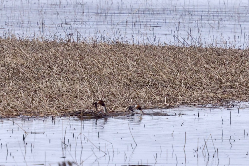Silkkiuikusta on tullut minulle yksi kevään suosikkilinnuista, jota tulee nytkin seurattua tiheään tahtiin. Itseasiassa nyt onkin juuri paras aika seurata silkkiuikkuja, koska kosiomenot ovat moninaisine liikesarjoineen ja tansseineen näyttävää katseltavaa. Lisäksi näin kasvukauden ollessa vasta alussa, ruovikolle näkee vielä helposti ja pääsee seuraaman myös pesän rakennuspuuhia.
