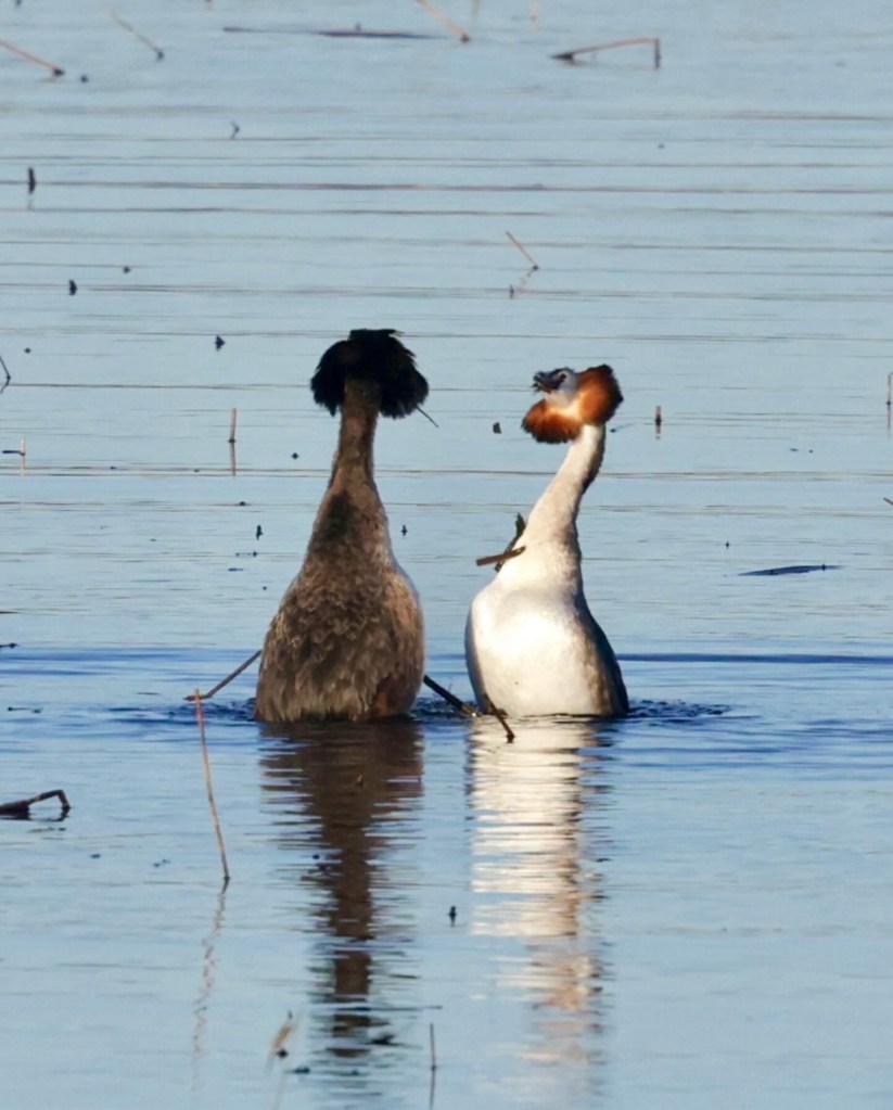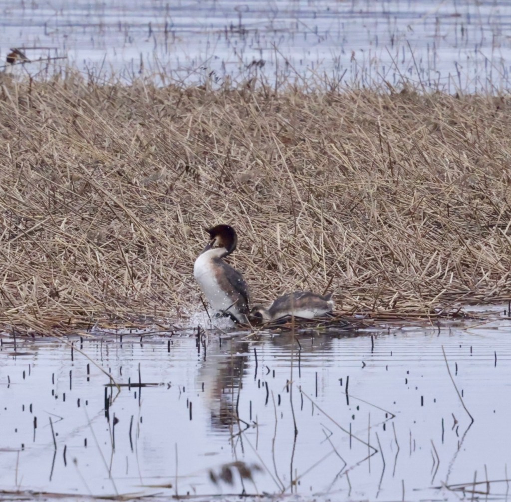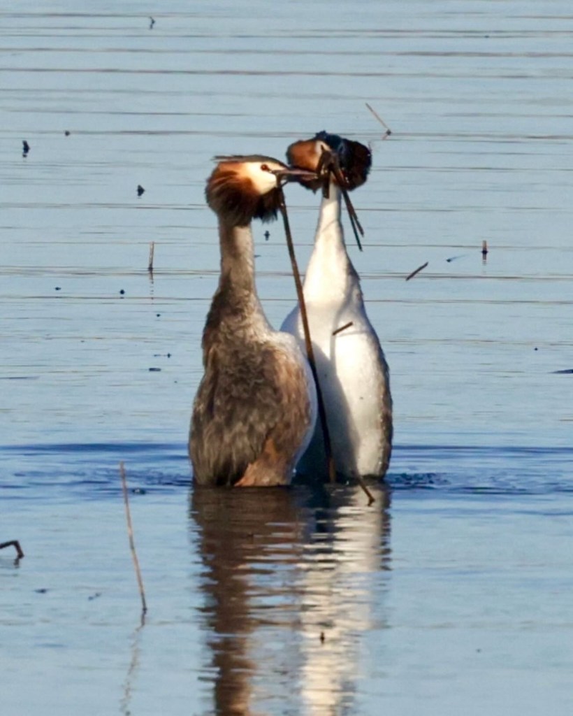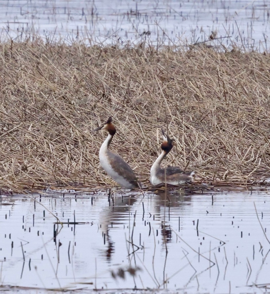 Silkkiuikusta on tullut minulle yksi kevään suosikkilinnuista, jota tulee nytkin seurattua tiheään tahtiin. Itseasiassa nyt onkin juuri paras aika seurata silkkiuikkuja, koska kosiomenot ovat moninaisine liikesarjoineen ja tansseineen näyttävää katseltavaa. Lisäksi näin kasvukauden ollessa vasta alussa, ruovikolle näkee vielä helposti ja pääsee seuraaman myös pesän rakennuspuuhia.