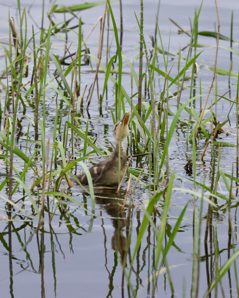 Syötävää ja sopivia piilopaikkoja täältä löytyy yllin kyllin. Tällä kertaa emon ja poikasten mukana ui myös isukki, hiukan muiden edellä. Yllätyin, koska yleensähän koiraita ei poikueiden mukana näy.