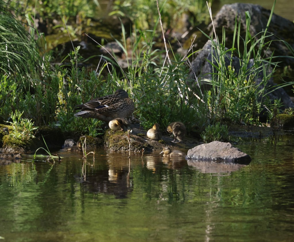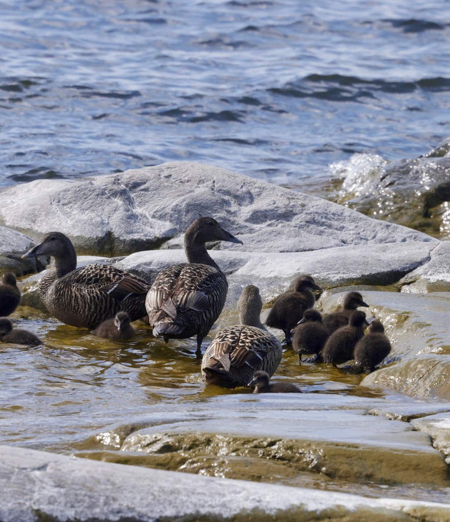 Sinisorsapoikueita näkyvissä Knuutilan rannoilla