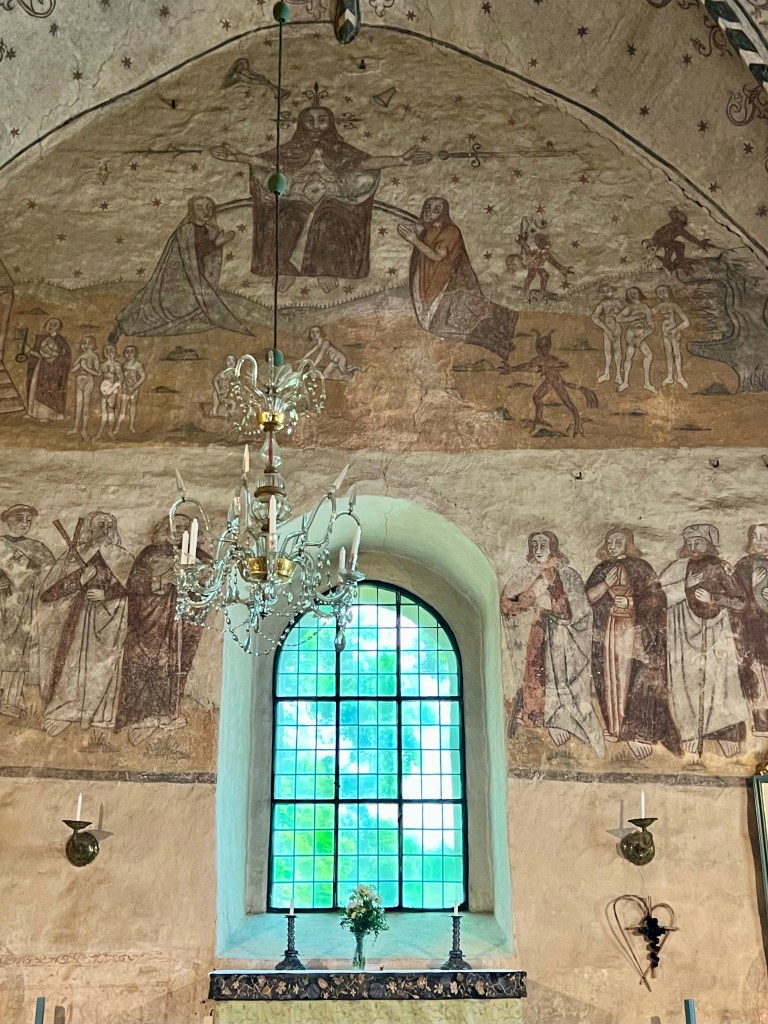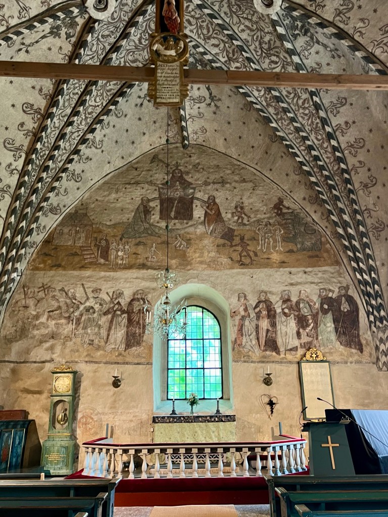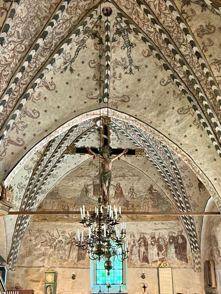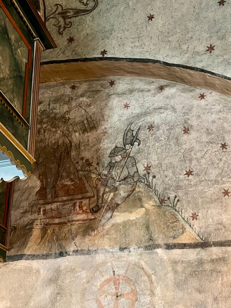 No nyt päästään siihen aiheeseen, jonka takia alunperin kiinnostuin tästä Rymättylän kirkosta. Kirkon maalaukset ovat kerrassaan upeat. Maalauksista löytyy renesanssipiirteitä, joka kielii keskiajan loppupuolesta.