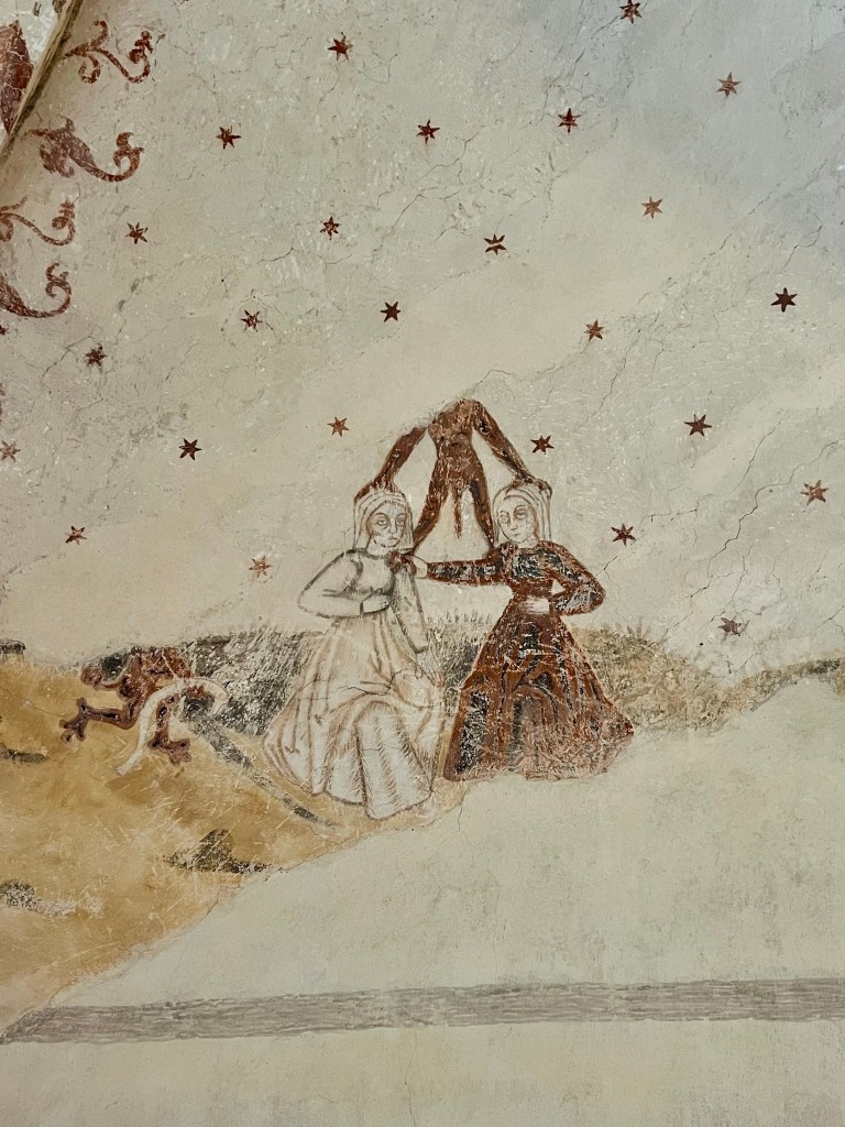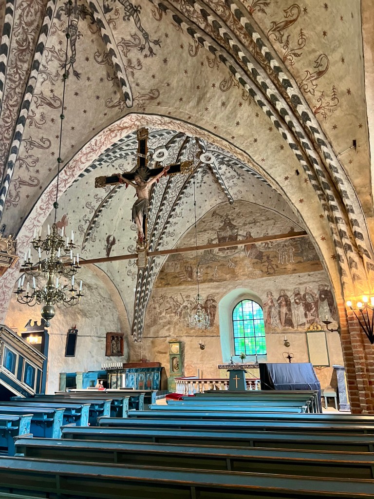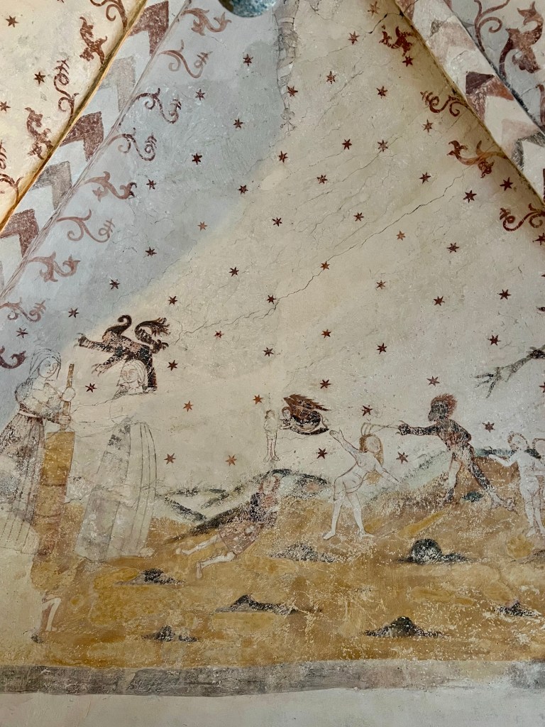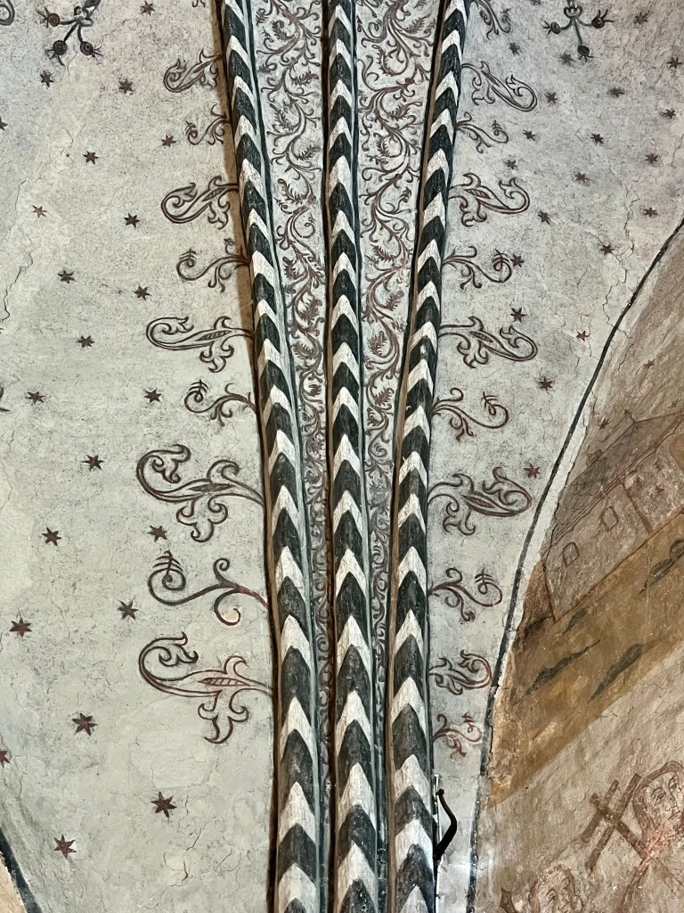 No nyt päästään siihen aiheeseen, jonka takia alunperin kiinnostuin tästä Rymättylän kirkosta. Kirkon maalaukset ovat kerrassaan upeat. Maalauksista löytyy renesanssipiirteitä, joka kielii keskiajan loppupuolesta.