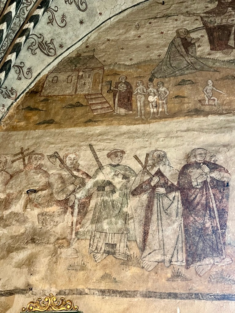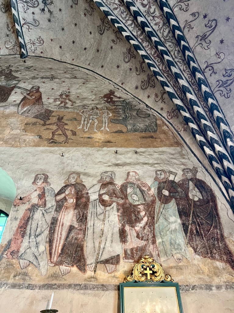 Kun kirkonkävijät saapuivat kirkkoon, ensimmäisenä olivat vastassa synnistä varoittavat maalaukset.