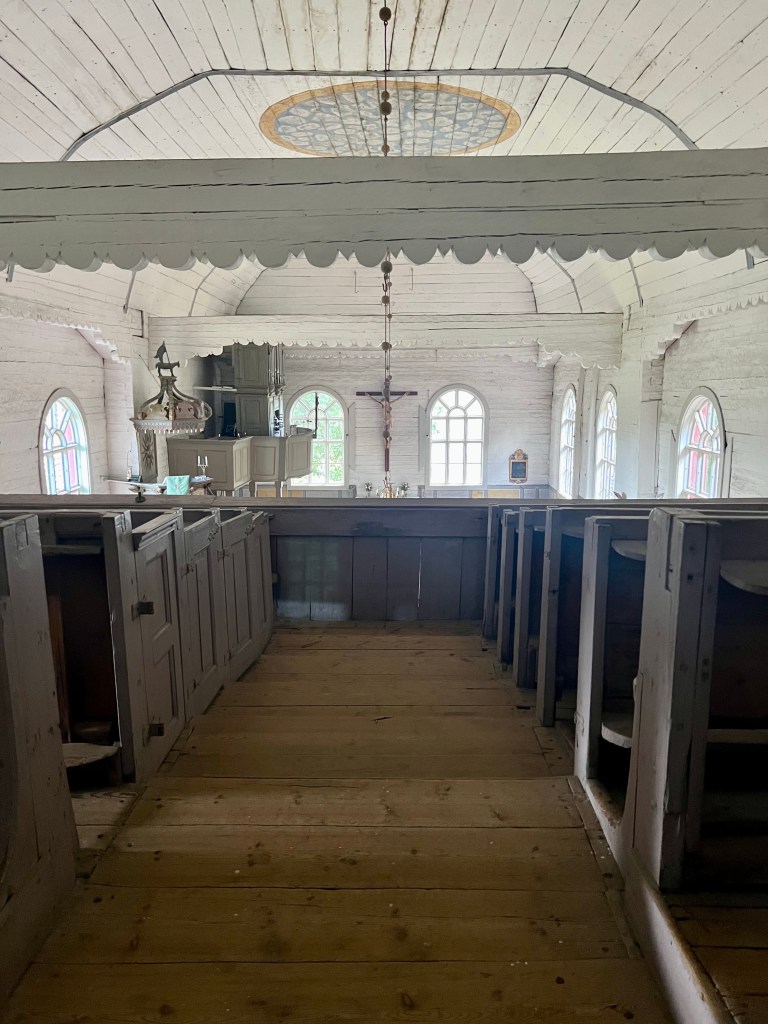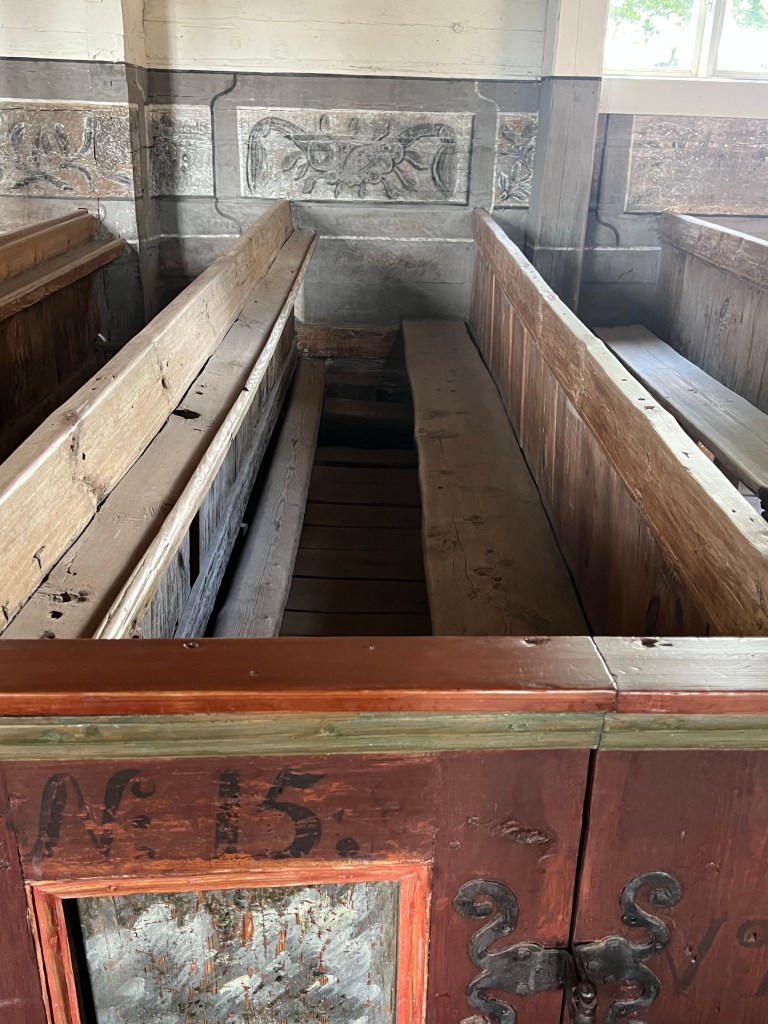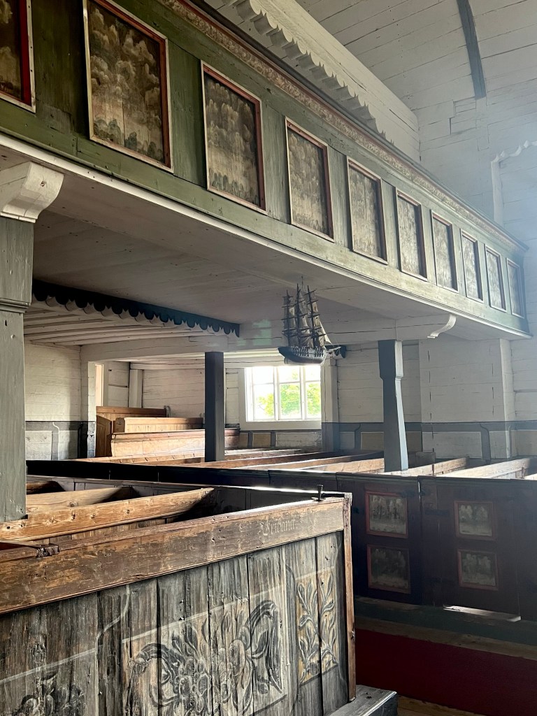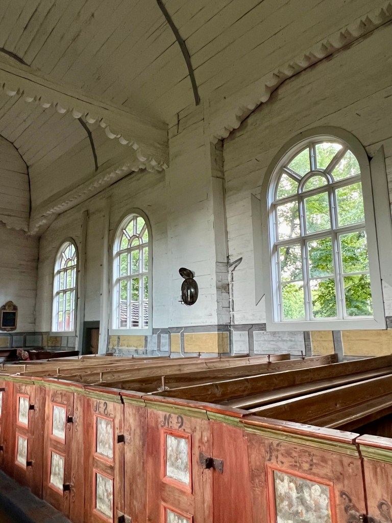 Yläparvelta penkkirivistöä. Lattia on tässä asteittain alaspäin viettävä. Kyllä sai olla varovainen ettei matka jatku turhan äkäseen alaspäin..Kaunis portaikko. Kirkkoa restauroitiin vuosina 1958-1964. Kirkko pyrittiin tuolloin palauttamaan mahdollisimman pitkälle alkuperäiseen asuunsa. Mm. näidenkin penkkirivien koristelut saatiin palautettua. Harmillista kyllä, en löytänyt tietoa koristelujen alkuperästä.Ensimmäisen kerroksen peräosista löytyi tällaiset penkit, liekö tuo taaempi ollut jonkinmoinen ”piinapenkki”. Tiedä häntä.Kirkkosali sai 1800-luvulla lisää valoa kun ikkunoita suurennettiin. Muutoin kirkon sisustus ja kalusteet ovat pääosin alkuperäisiä.Ei taida nykyajan ihminen kovin mukavasti mahtua tähän istumaan.. Urkulehterillä olevat urut ovat 1770-luvulta. Nils Strömbäck on rakentanut urut. Hän on ilmeisesti ensimmäisenä Suomessa käyttänyt nimitystä”urunrakentaja”. Hän esitti vuonna 1775 kaupungin maistraatille tarjouksen, että hän rakentaisi kirkkoon urut ja jäisi urkuriksi. Tarjous hyväksyttiin ja urut valmistuivat 1776. Urut olivat aikanaan käytössä 150 vuoden ajan. Uuden kirkon valmistuttua tämä kirkko jäi rappiotilaan ja urkupillit hävisivät. Urut on kunnostettu 1980-1990-lukujen vaihteessa. Näkymä takaosaan ja parvelle.Sisääntuloeteinen