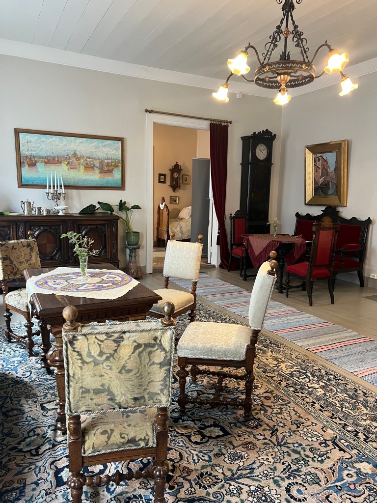 Café Lebell toimii Felenin talossa. Vieressä on hiukan kuuluisampi kauppiaantalo, Lebell. Tästä siis kahvilan nimi. Lebellin kauppiaantalo on museoitu ja myös museokorttikohde ja me oltiin menossa sinne, mutta ennakkotiedoista poiketen se olikin suljettuna. No onneksi tämä Felenin talo nyt tarjosi kuitenkin historiannälkäiselle nähtävää. Taloon saa siis tutustua aivan ilmaiseksi ja vaikkapa kierroksen lopuksi nauttia kahvion antimista tässä niin kauniissa ympäristössä.
