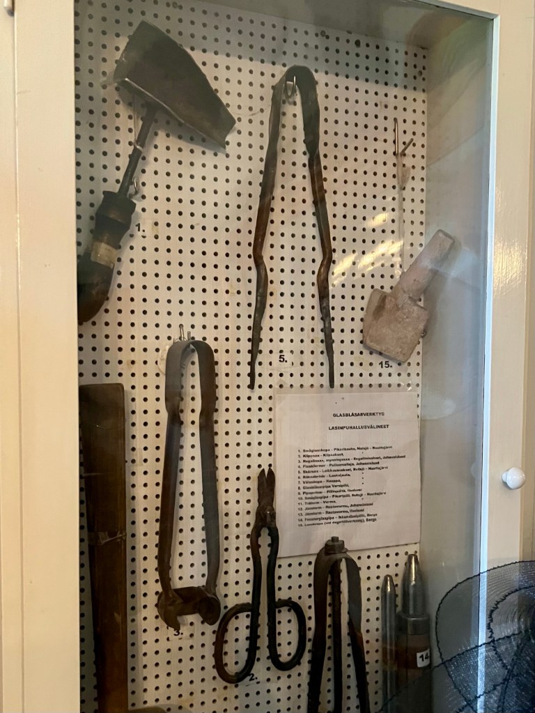 Carl Sjöblom on testamentannut suuren osan irtaimistoaan Lebellin kauppiaantalon säätiölle. Monet yksityishenkilöt ovat myös avuliaasti olleet lahjoittamassa irtaimistoa tähän kauppiaantaloon.Tässä pieni osa Carl Sjöblomin testamenttaamasta lasikokoelmasta.Vähän lisää.. jos olet kiinnostunut lasista, kannattaa ehdottomasti käydä täällä tutustumassa.Työkaluja lasin käsittelyyn.Rantakatu 53, Kristiinankaupunki