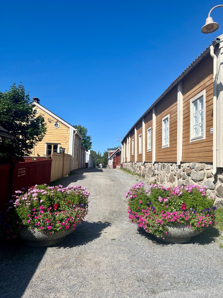 Vaasasta kurvaamme kohti Oulua Pietarsaaren kautta. Pietarsaaressa lounaspysähdys ja käydään tutulla kirpputorilla ja sen läheisyydessä käppäilemässä.