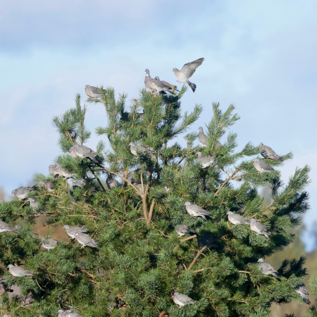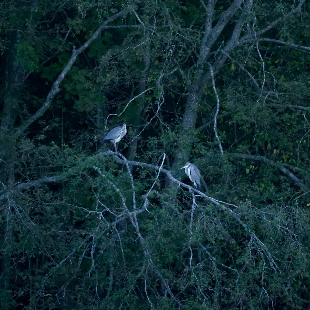 Joutsenperhe, Kesäniemi, Siuro 23.9.Mainitsin ne neljä harmaahaikaraa Siuronkoskella. Tässä numero yksi, kosken yläjuoksun pitkosella 23.9.Ja seuraavat kaksi puussa.Ja neljäs oli koskessa kalatiellä.Sepelkyyhkyparvi valtasi kaksi vierekkäistä mäntyä Alasella. Komealta näyttää muuto näilläkin.Kurkiaura 23.9.Joutsenet.Nuori kuikka, Siuro 30.9.