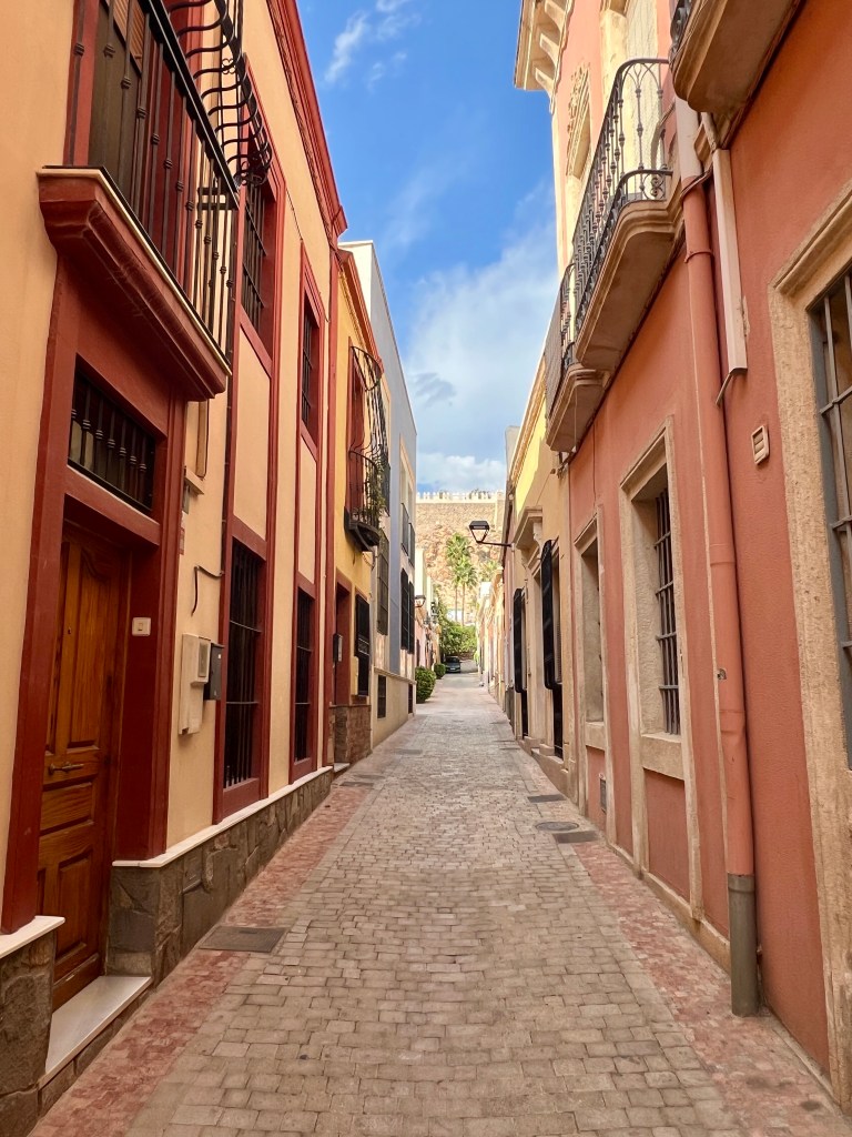 Almedinan alue lähellä linnoitusta on kaupungin vanhimpaa aluetta. Almedinan katuverkko on muslimiajalle tyypillinen. Pääkadut, mm. Calle Real de la Almedina yhdistyvät kapeisiin sivukujiin. Calle Realilta ja Calle Descansolta on näkymä Alcazaballe. Aiheesta lisää: https://www.turismodealmeria.org/en/lugar/the-medina-walled-town/