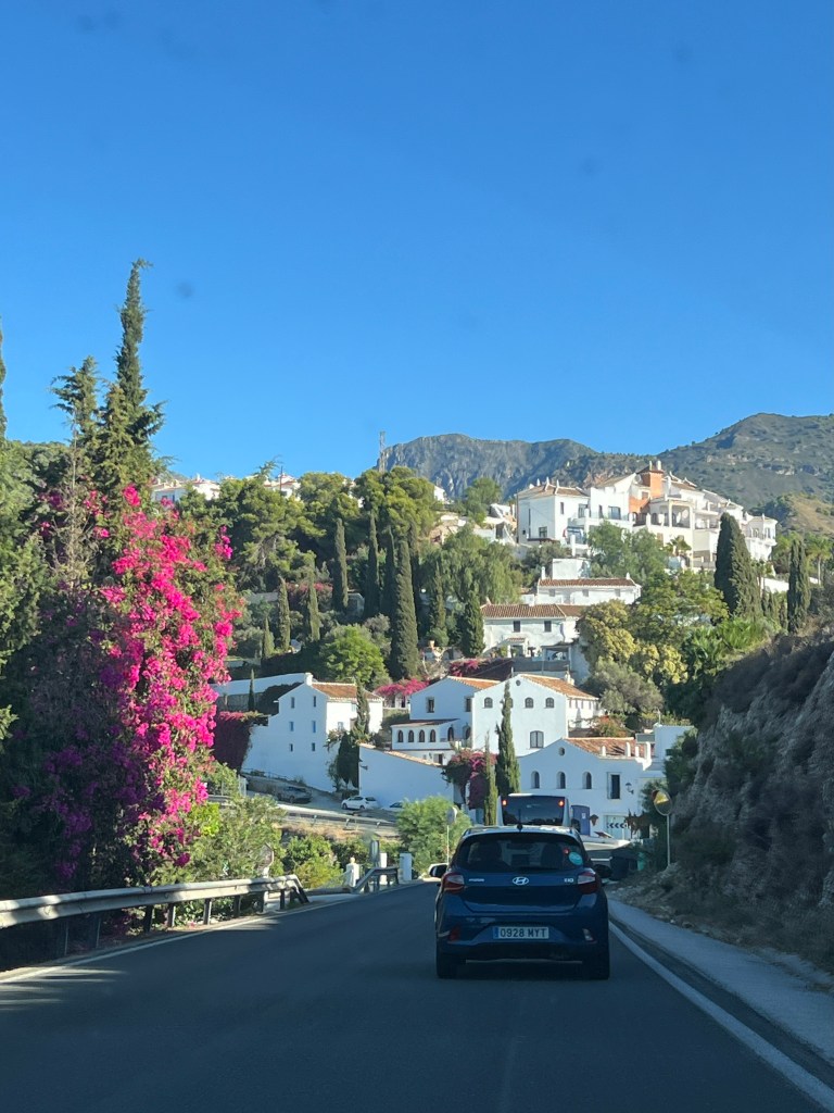 Lähdemme Nerjasta päiväretkelle kohti Frigilianaa. Paikallisbussilla pääsee Nerjasta Frigilianaan oikein hyvin ja aivan vanhan kaupungin äärelle. Kun meillä se auto kerran oli, läksimme sillä ja ajatuksen oli käydä samalla reissulla katsomassa millaisessa paikassa Nerjan tippukiviluolat ovat. Nerjasta Frigilianaan on ainoastaan 6 kilometriä.