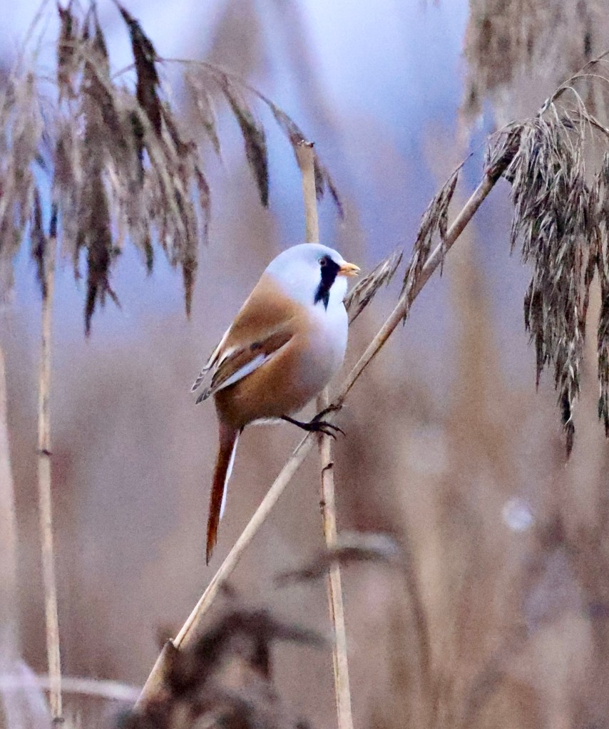 Viiksitimalikoiras viime vuoden marraskuulta. Paikka Naarlahti, Siuro. Reilun kymmenen linnun parvi enimmillään osui kuviin. Ei ole enää tämän vuoden puolella näkynyt ja toisekseen kaupungin ruoppausosasto meni ja ruoppasi turhan innokkkaasti myös tätä pitkää kaislikkoa… Pääosin viiksitimaleja havaitaan talvisin rannikkoalueella, mm. Porissa. Myöskin sisämaassa on mahdollista havaita timaleja myös keskitalven aikaan. Vuosia, vuosia sitten olen Siurossakin nähnyt, tuolloin en vielä harrastanut lintukuvausta, enkä muutenkaan ollut linnuista erityisen kiinnostunut. En siis ymmärtänyt havainnon erityisyyttä😊.