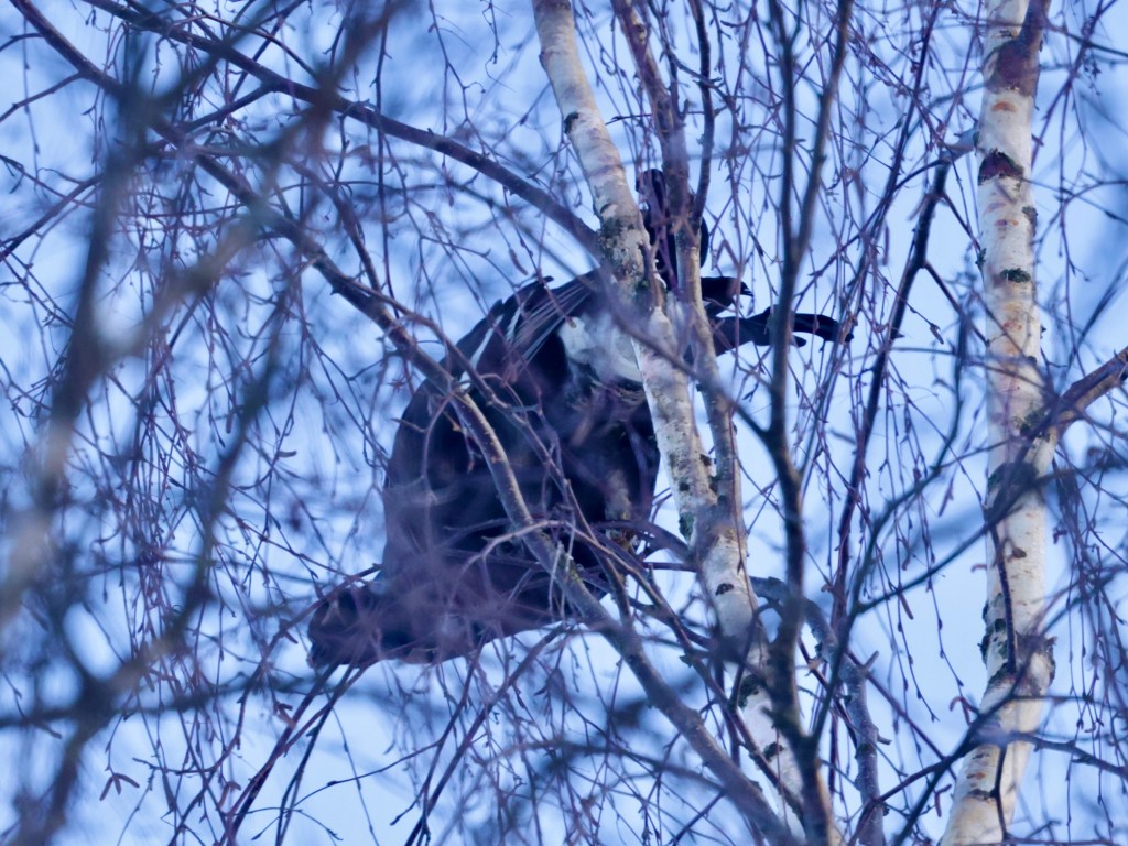 Punatulkkupari, Tampere 13.2. Nokkavarpunen oli Härmälässä kiikarissa, jo toiseen otteeseen, mutta ei vaan näkynyt. Punatulkkuja oli sentään liikkeellä. Ei unohdeta myöskään näitä aivan jokapäiväisiä pihojen tuttavuuksia😊. Varis ja naakka poseeraavat.Sinitiainen männyn oksalla.Telkkä, Siuronkoski 31.1. Talvehtivia telkkiä näkee harvoin Siuronkoskella, mutta nytpä oli yksi käväisemässä nyt ainakin. Luultavasti löhistöllä talvehtii. Eipä muuten mene enää kovinkaan kauaa kun ensimmäiset muuttavat telkätkin saapuvat. Muutto alkaa maaliskuussa.