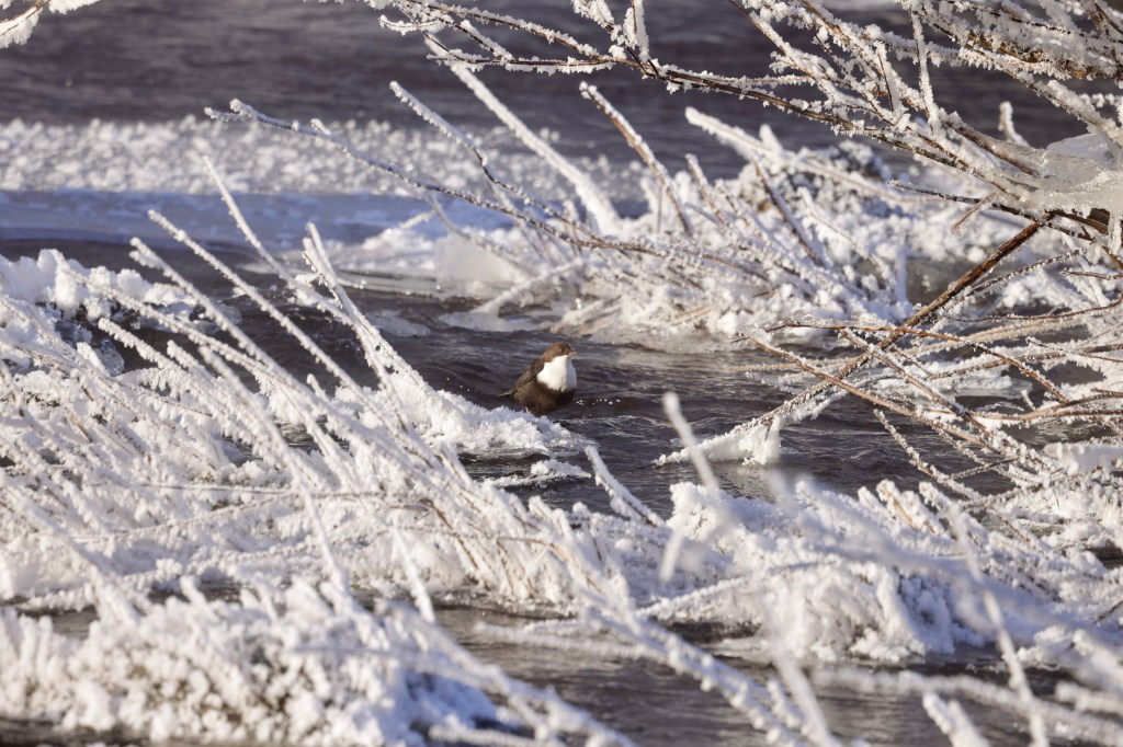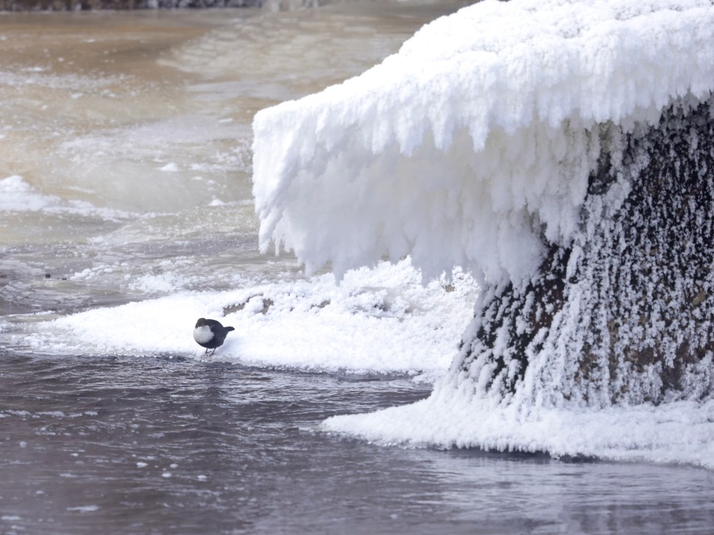 4.2.2026.Ruokapöydän äärellä 4.2. Nyt on vähän vaikea analysoida, mitä tuossa on. Koskikaran lautaselle kuitenkin kuuluu nilviäisiä, äyriäisiä, pieniä kotiloita, vesihyönteisten toukkia ja jopa pieniä kaloja. Siuronkoskessa tuntuu olevan evästä riittämiin.Koskessa riittää jo jäätä, mutta virtausta on sen verran, että vettä kyllä riittää.Padon kupeessa.Myötävirtaan.Pose
