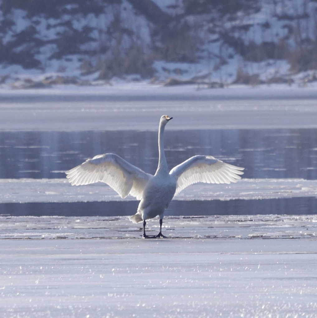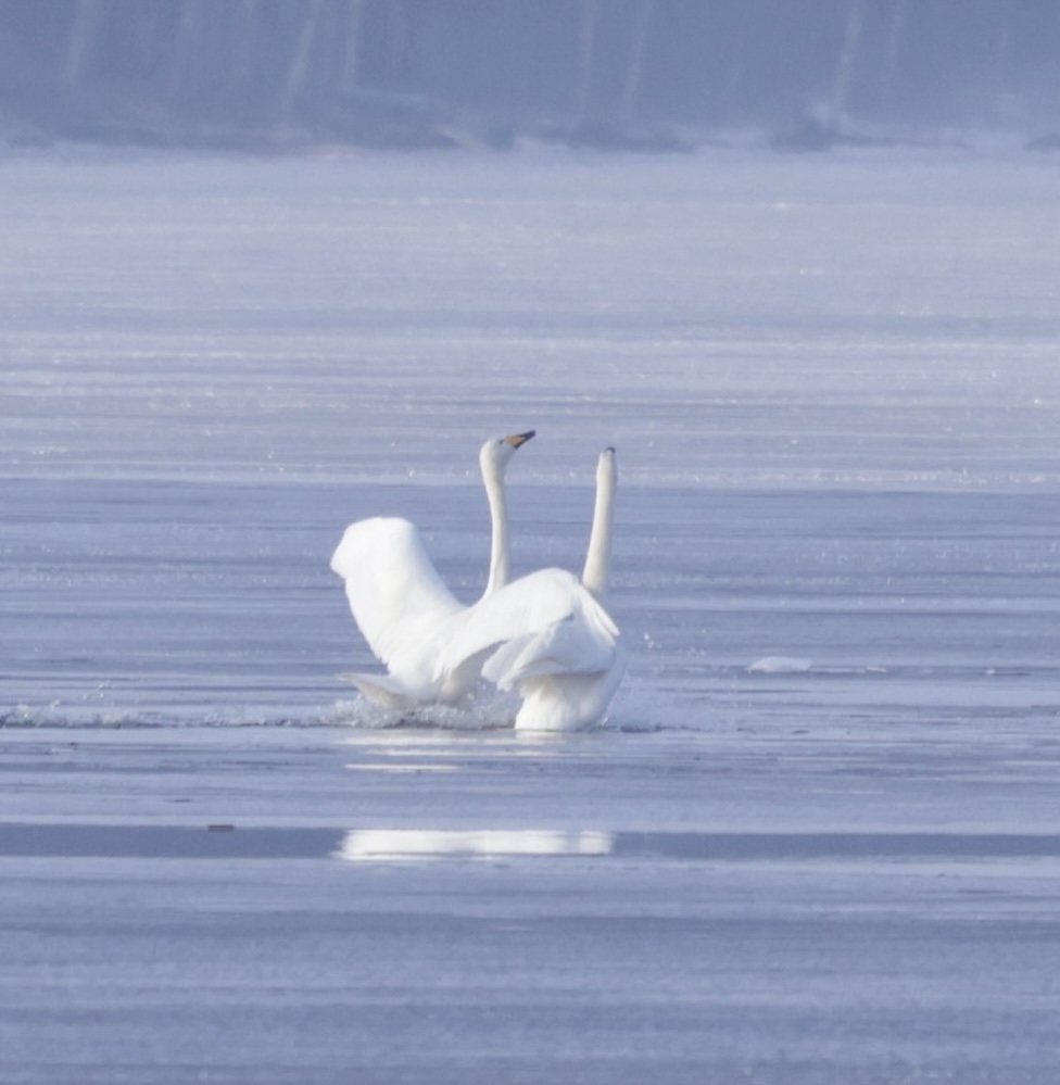 Tämä joutsenpari oli sulassa, kun menin paikalle. Jossakin vaiheessa kumpikin lähti lentoon ja laskeutuivat sitten vuorotellen. Kevään kosiomenoja🥰.Tervetuloa kevät🌱. Tässä toisen joutsenparin yksilö.Nuoret joutsenet laskeutuvat sulaan. Vähän näkyy harmaata siivissä.Isokoskeloilla on jo keväthiminät täydessä käynnissä😅. Taisi olla neljä koirasta ja kaksi naarasta. Aikaisin näyttävät aloittavan. Sinitiaisparilla oli ralli päällä. Malttoivat hetkeksi pysähtyä kuvattavaksi.Juu, on jäinen!Harmaalokki. Harmaalokin erottaa kalalokista kokoa vertaamalla. Nokka on suurempi ja siinä on punainen täplä. Silmä on vaaleampi. Roteva yleisolemus.Isokoskelokoiras lipuu joutsenparin edestä.