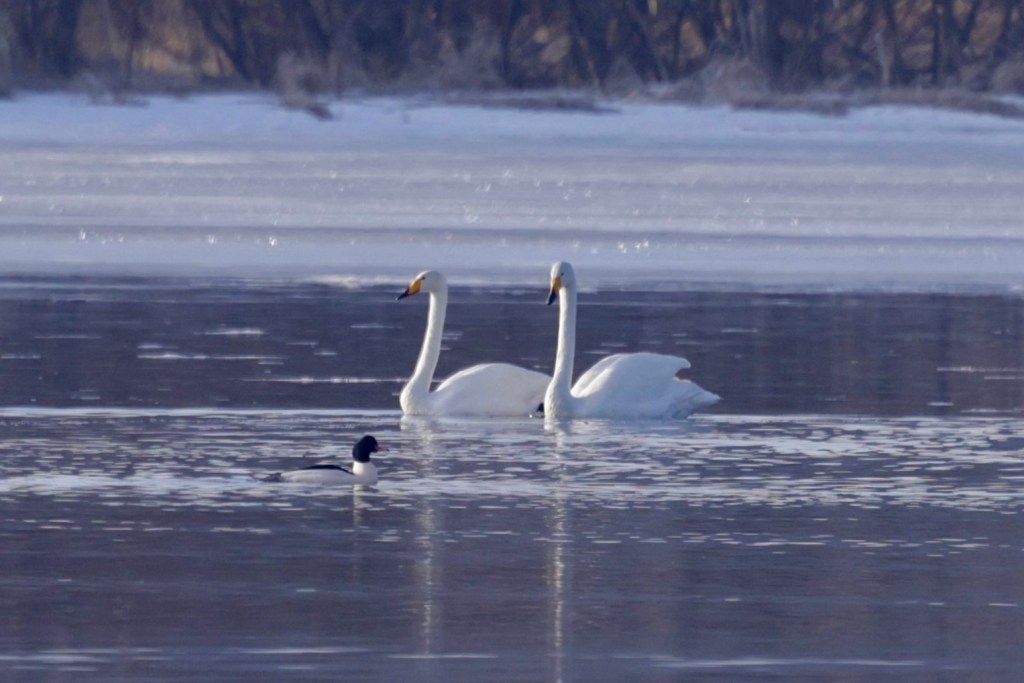 Sellainen aamu oli se. Uusia lajeja ei tullut, mutta kivahan näitäkin oli tarkkailla. Joutsenet ilahduttavat aina.