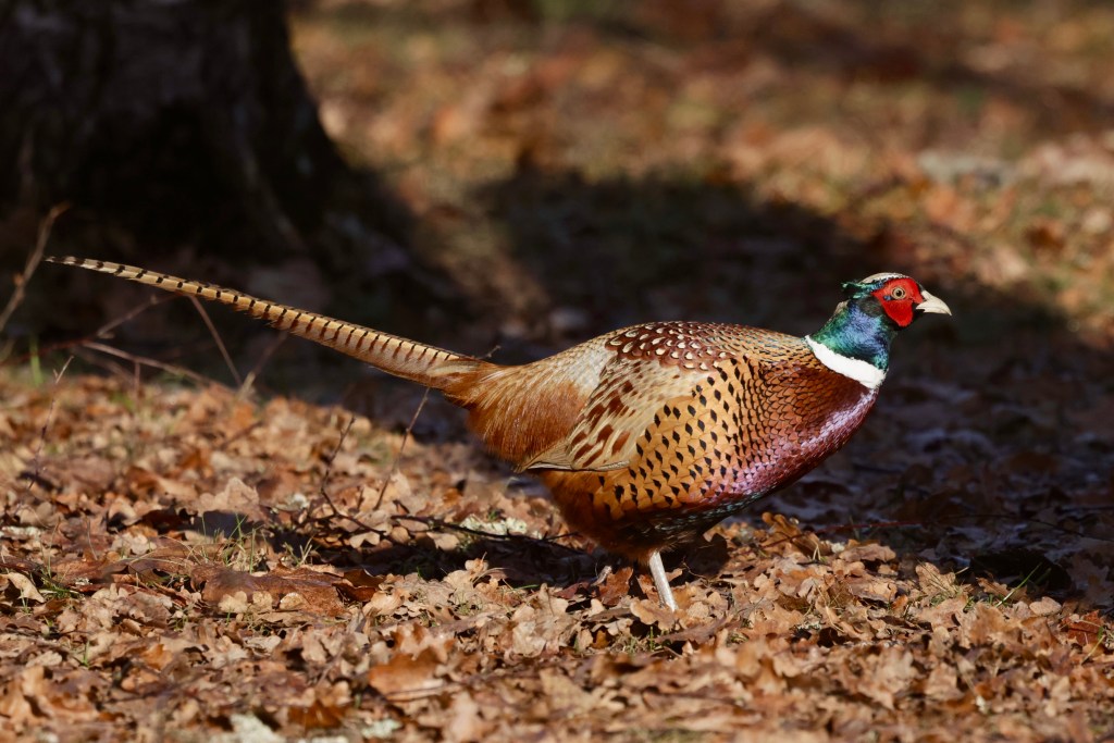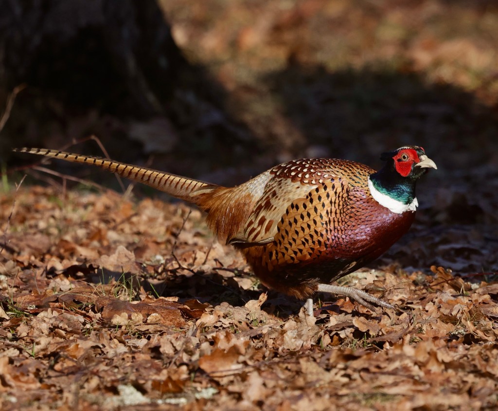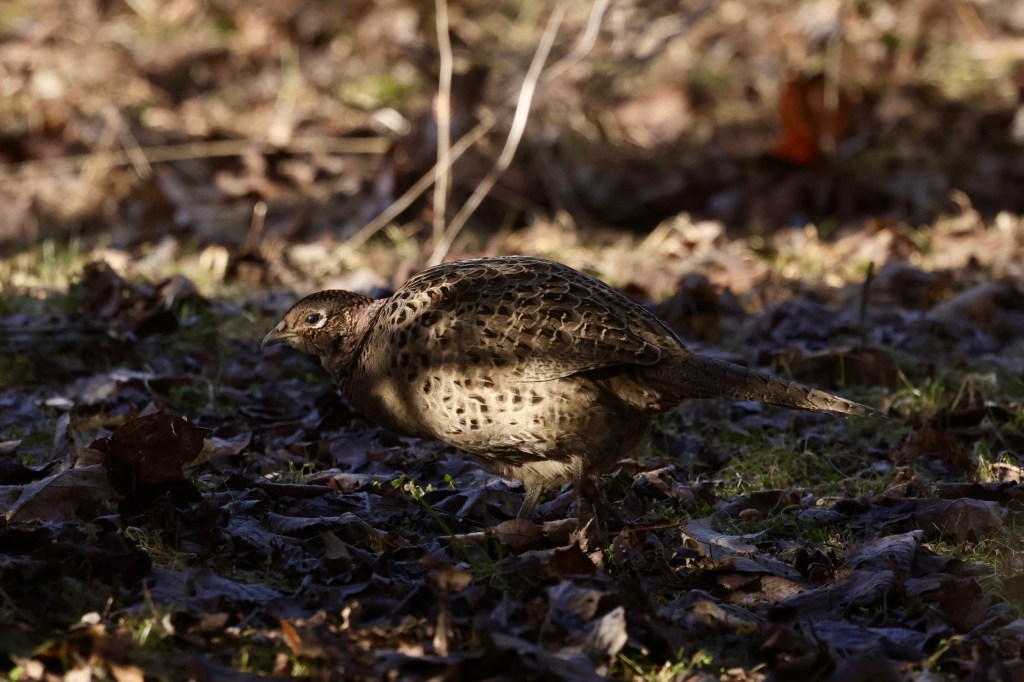 Alueella on paljon vanhaa puustoa ja esimerkiksi puukiipijän voisi hyvinkin nähdä siellä. Ei ollut puukiipijää, mutta olipa koirasfasaani, jonka upea värikäs puku oikein loisti upeasti auringonpaisteessa, välillä vähän väriä vaihtaen. Vaikka fasaanikoiras ei olekaan pelokas, Katselin sitä kuitenkin sopivan matkan päästä, kuinka se teki kierrosta hitaasti ja arvokkaasti edeten. Heläyttipä väliin erittäin kuuluvaa soidinääntään ”köök köök”.