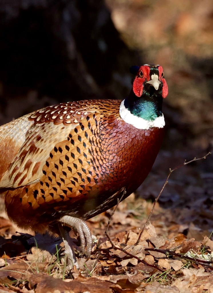 Muutama kuva ja läksin rauhakseen vastakkaiseen suuntaan kävelemään. No, sieltäpä tulikin vastaan lauma naarasfasaaneita, jotka minut tajutessaan sinkosivat kuka minnekin pienin pyrähdyksin ja harppauksin. Laskin, että neljä naarasta tällä kukolla on kierroksessa, eli voisi sanoa jo haaremiksi. Ilmeisesti koiraan töräytys oli sen verran kutsuva, että liikkeelle lähdettiin😅. Jätin rauhassa sinne kartanon pihalle soitimiaan pitämään❤️.