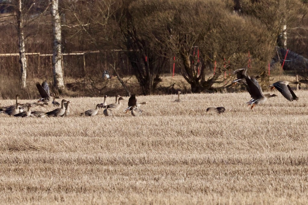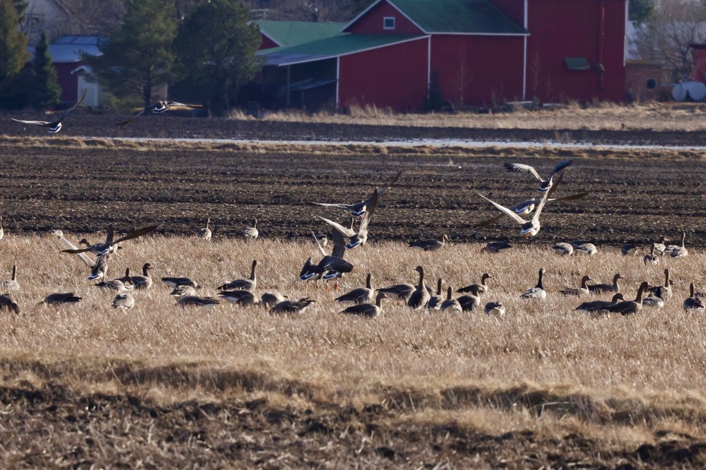 Sunnuntaina sää helli jälleen ja päätimme lähteä katselemaan Huittisten peltoja. Toiveissa oli tietenkin nähdä hanhia ja ehkäpä myös kurkia? No, kurkia ei näkynyt vielä pelloilla, mutta hanhia löytyi.
