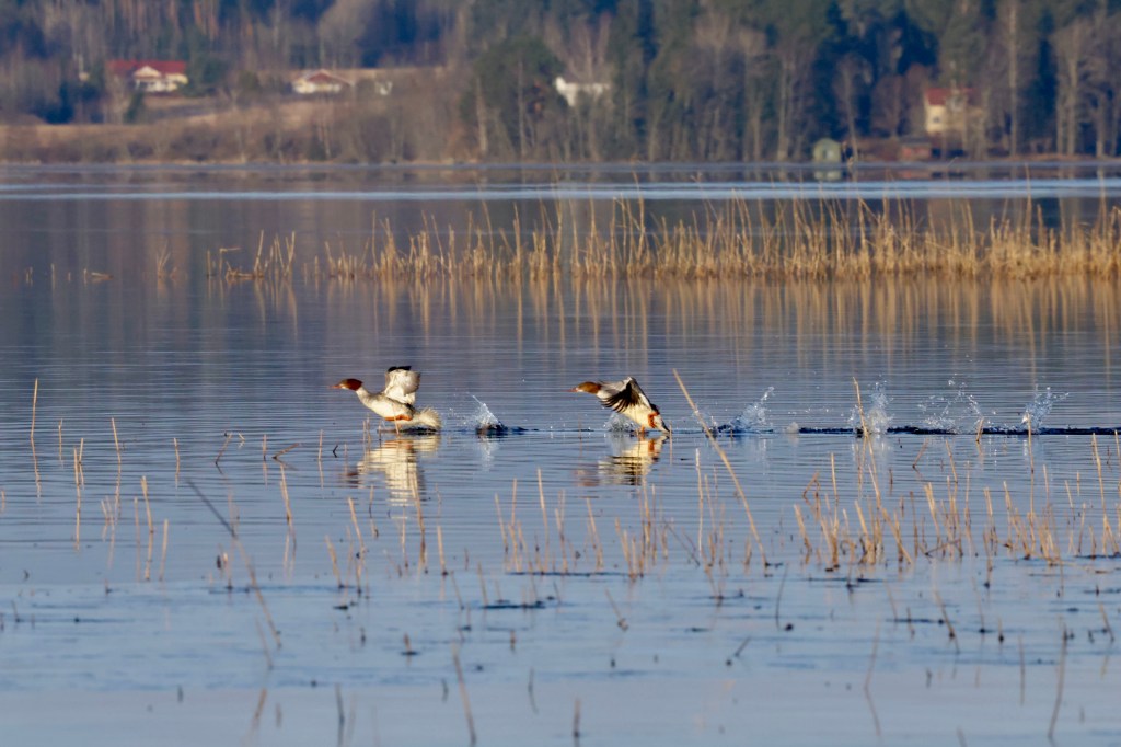 Ajan auton Knuutilan venerannan parkkiin 31.3. Täällä ollaan vielä kovasti unten mailla. Kello on 8.30. Nyt ei tässä muuta niin mielenkiintoista, kävelen tutulle paikalle Lammasnokkaan.Koirasuivelot ladon yllä. Uiveloita siis jälleen liikkeellä. Niitä on tullutkin nähtyä jo tässä suht usein. Ei mitään peruskauraa.Silkkiuikku❤️. Ai että mä rakastan tätä lintua! Toinen havainto Lammasnokasta tältä keväältä.On siis niin ihanan tyyntä ja seurailen lähellä olevaa telkkäparia. Yhtäkkiä katseeni kiinnittyy vedessä liikkuviin juoviin. Siis ei siinä mitään näy pinnalla, mutta kyllä nuo liikkuvat! Saukkohan se siinä, suussaan saaliina sinisorsakoiras. Istuin paikallani lähes hengittämättä ja kurotin näkökenttääni kameran linssin takaa, kunnes saukko puikahti vikkelästi läheisen ruovikon suojiin. Maagista.Kurkien tanssia, Hämeenkyrö 31.3. Toinen ei kyllä ollut tällä kertaa innokas lähtemään mukaan.Töyhtöhyypät lennossa pellon laidalla, Hämeenkyrö 31.3.