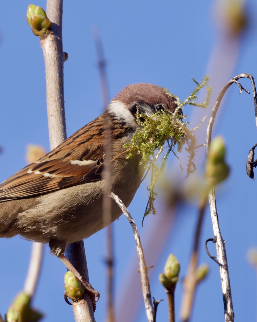Asumme vanhalla rintamamiestaloalueella ja täällä on myöskin paljon vanhoja puita, pensasaitoja yms. joista pikkuvarpunen tuntuu tykkäävän. Orapihlaja-aita tuntuu olevan erityisen mieleen. Viime keväänä leikkautimme oman aidan nurin ja toistaiseksi sirkuttajien täytyy tyytyä seuraavaksi parhaimpaan vaihtoehtoon. Hyvä korvaaja löytyikin vastapäisen talon vanhasta sypressistä.